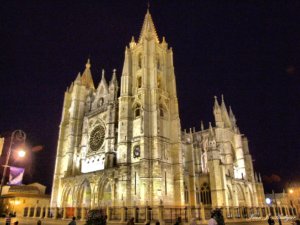 León katedrálisában a fények játsszák a főszerepet. A román stílushoz képest a gótikában rengeteg az oszlop, az ív, ami lehetővé tette, hogy az addig szürke és sötét templomok belsejébe behatoljon a természetes fény. A XIII. századi ember, aki szentmisén vett részt a leóni katedrálisban, a mennyekben érezhette magát, annyi féle színes üvegen szűrődött át a fény, szivárványszínbe öltöztetve a teret. León székesegyháza őrzi a világ egyik legjelentősebb, középkori eredetű üvegablak csoportját.